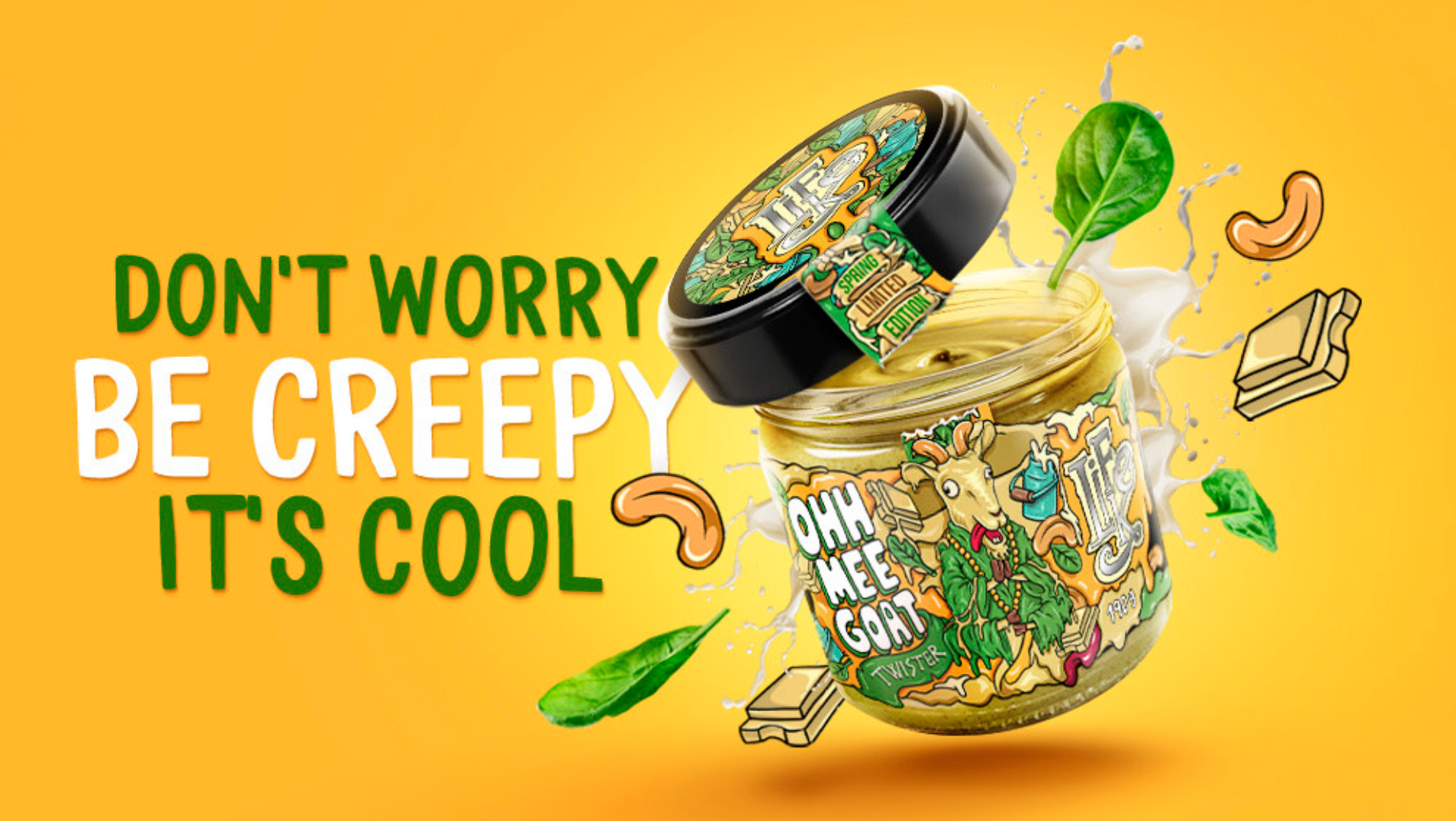 Zahoď předsudky, jarní limitka je tu! ☀️ OHHMEEGOAT TWISTER - Ořechový krém z pražených kešu oříšků, sušeným kozím mlékem, špenátem a bílou čokoládou - je kombinace, která tě dostane na kopýtka 🐐🐐🐐 Nečekej klasicky nudnou příchuť 🌈