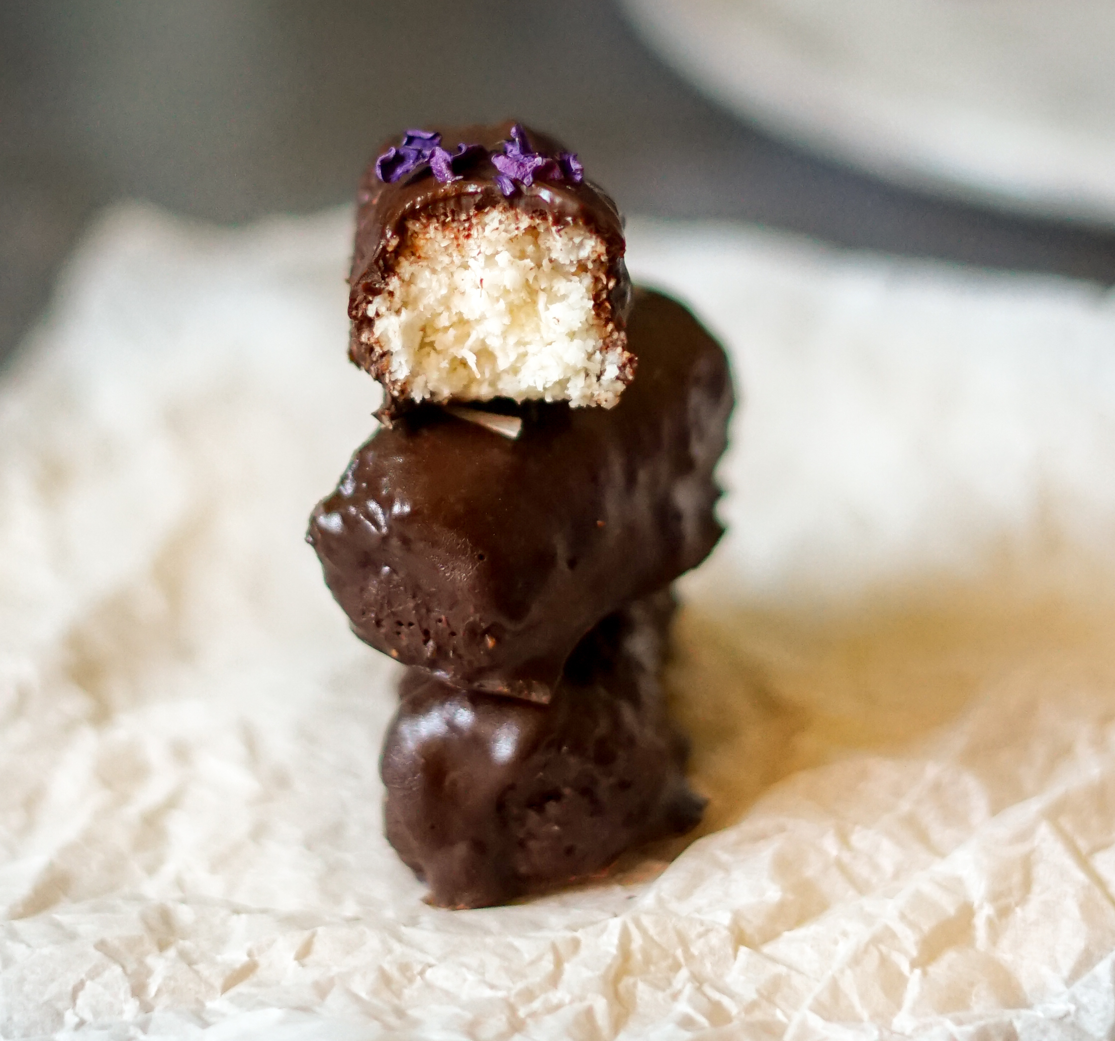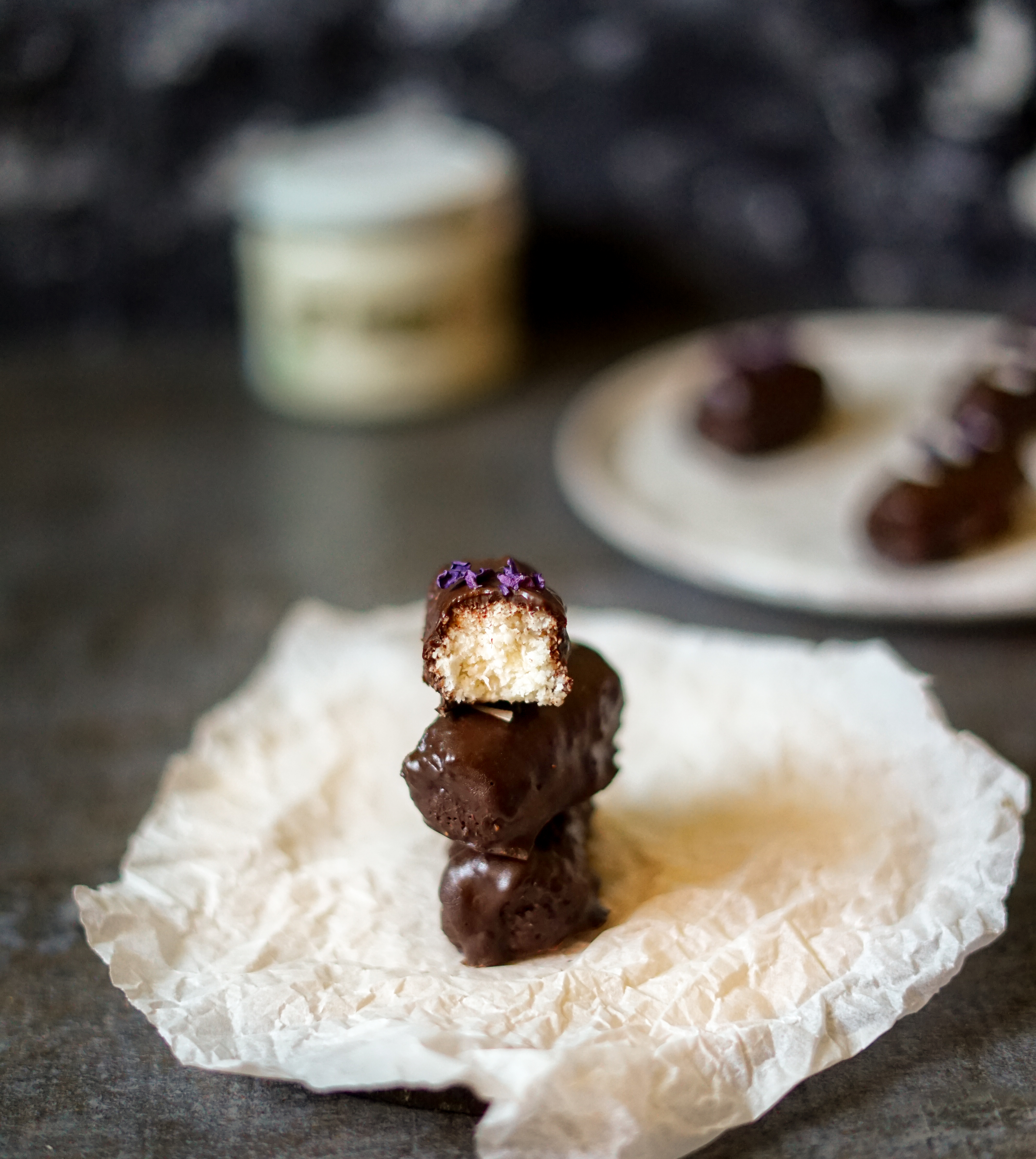 Nastrouhaný kokos opražíme za stálého míchání asi minutu na rozžhavené pánvi tak, aby nezhnědl, ale pustil svoji vynikající chuť a aróma. Takto opražený kokos vložíme do misky se všemi kokosovými ingrediencemi a agáve sirupem. Takže do misky nalejeme 1 dc kokosového oleje, ½ dc agáve sirupu a 5 plných lžic kokosového krému. Všechno dobře promícháme a postupně začneme tvarovat tyčinky podle vlastní velikosti. Hned po vytvarování dáme na hodinu do mrazáku, aby kokosový olej ztuhl a tyčinka tak držela tvar. Mezitím roztopíme kakaovou hmotu ve vodní lázni a přidáme 2 pl kokosového oleje. Dobře promícháme a můžeme začít namáčet naše Bounty tyčinky. Namáčení opakujeme alespoň třikrát a dozdobíme podle vlastního gusta – oříšky či mátou. Nakonec necháme tyčinky zchladnout hodinu v ledničce a můžeme ochutnávat. Dobrou chuť !