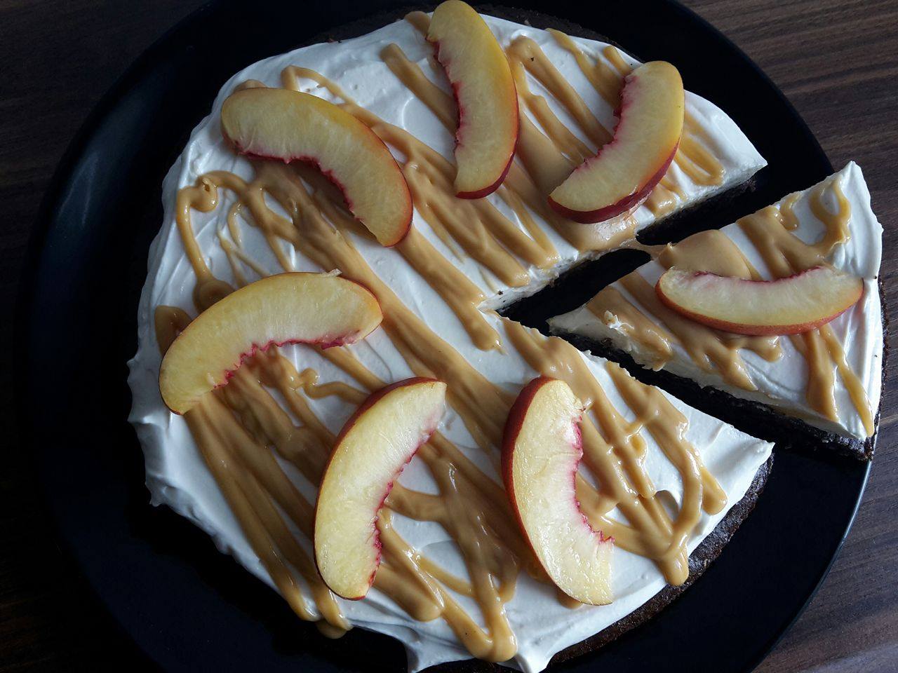 Kakaový koláč s tvarohem a arašídovým máslem: