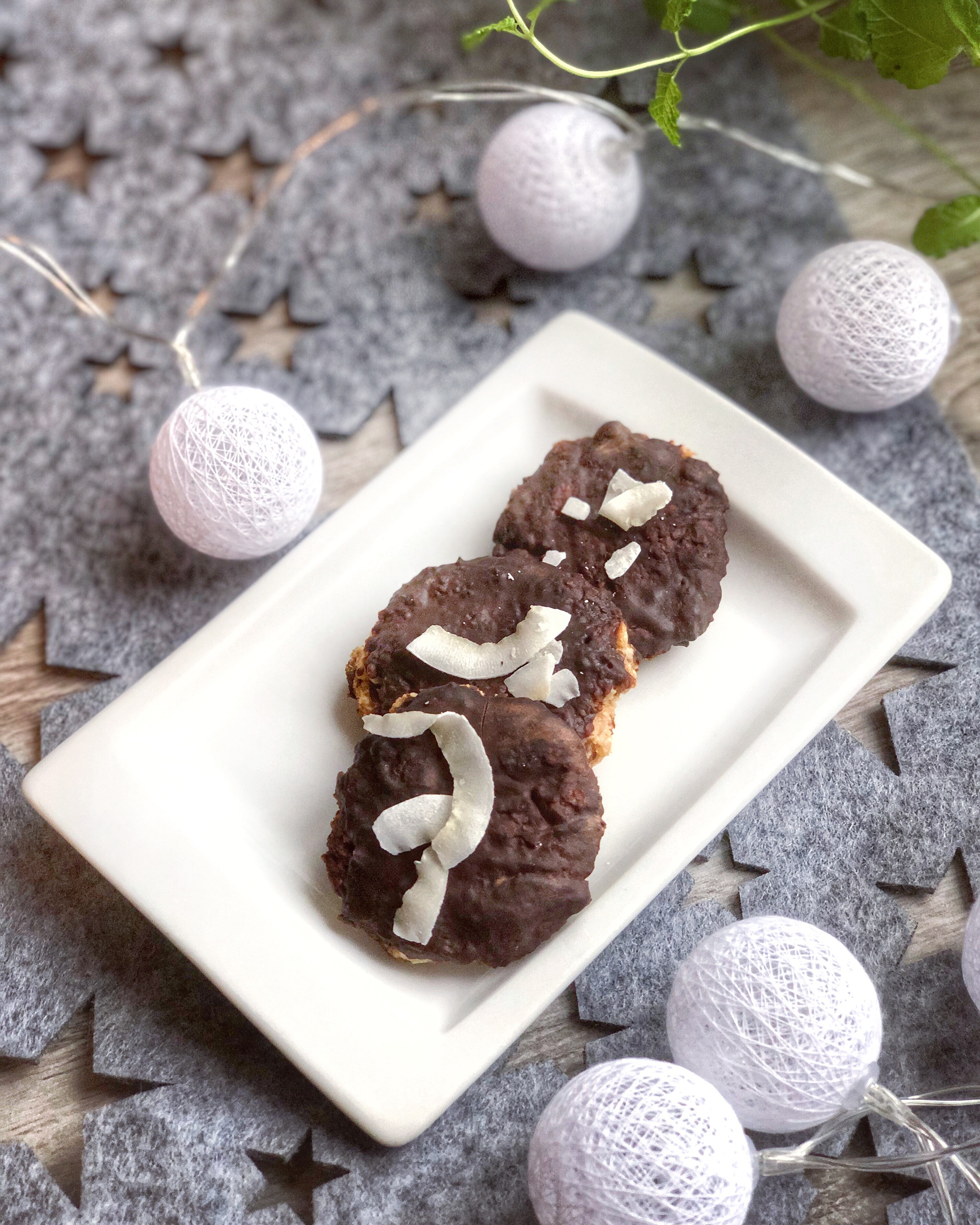 Vlašské ořechy a kokosové chipsy pomele ve výkoném mixéru na jemné kousky. Přidáme kokosové mléko , jedno vajíčko, špetku skořice a vanilky. Těsto zpracujeme a nedáme odležet na pár hodin v ledničce. Nachystáme si kulatou formu a z vyváleného těsta vykrojíme kolečko. Kolečka rozprostřeme na plech s pečícím papírem a vložíme do předem rozžhavené troby. Pečeme na 190 st cca na 15 min. Sušenky necháme vychladnout. Mezitím ve vodní lázni za stálého míchání rozpustíme 100% čokoládu a přidáme trochu kokosového mléka. Namočíme suřenku do čokolády a necháme v lednici ztuhnout.