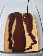 3. Zahřej rostlinné mléko s olejem a přidejte čokoládu. Zahřívejte opatrně, aby se čokoláda nepřipálila, nalijte na ztuhlou vrstvu a dejte zamrazit na další hodinu