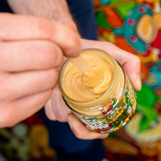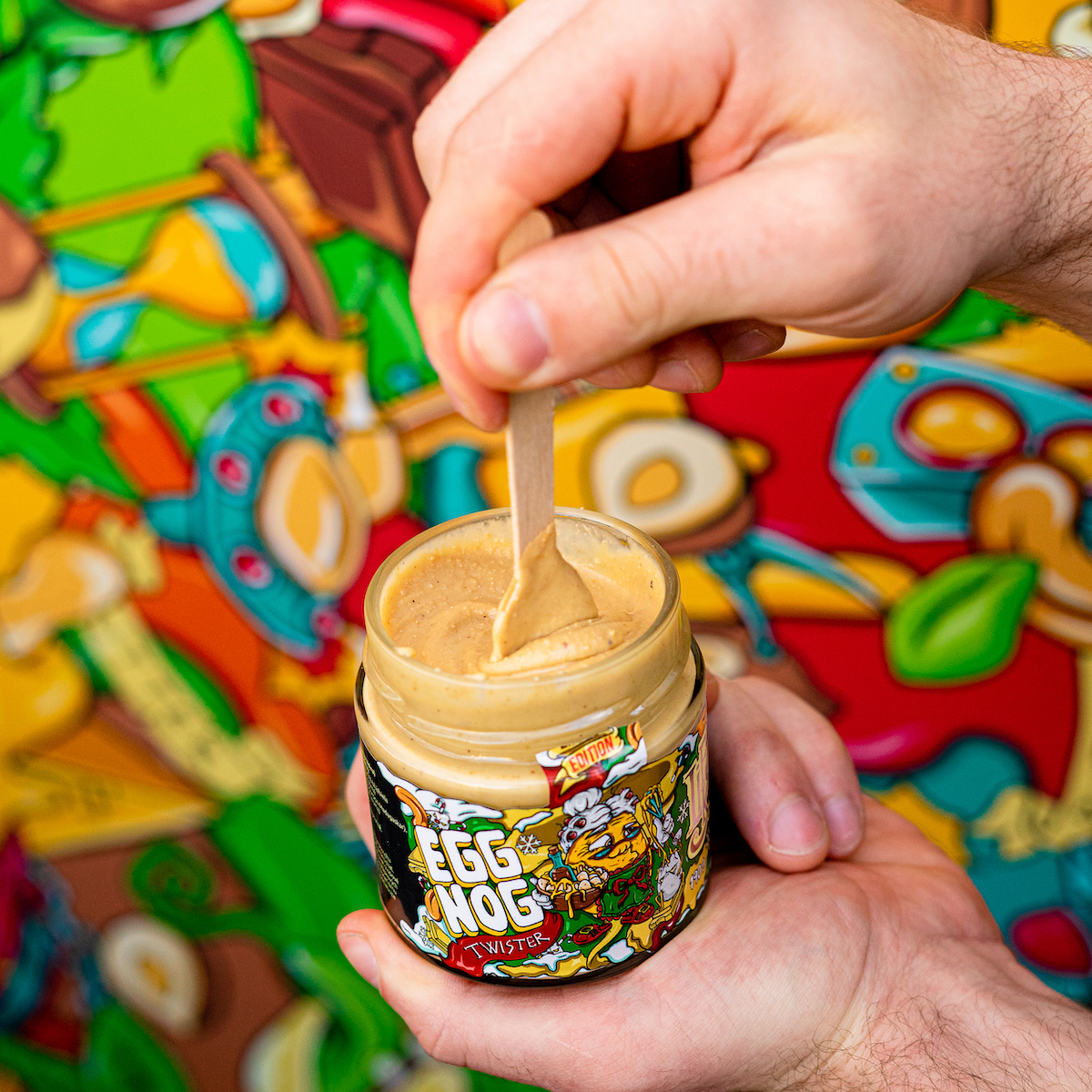 Základ tvoří pražené kešu oříšky s jemnou bílou čokoládou a nealkoholická verze vaječného likéru. Takže je vhodný i pro děti 👶 Prostě vánoce ve skleničce, stačí jen otevřít 🎁