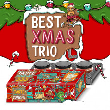 Sada obsahuje: Christmas Vanilla Twister (ořechový krém s vanilkou) 300g, Almond Gingerbread Cream Twister (ořechový krém s perníkovým kořením) 300g, Eggnog Twister (ořechový krém s příchutí vaječného likéru) 190g