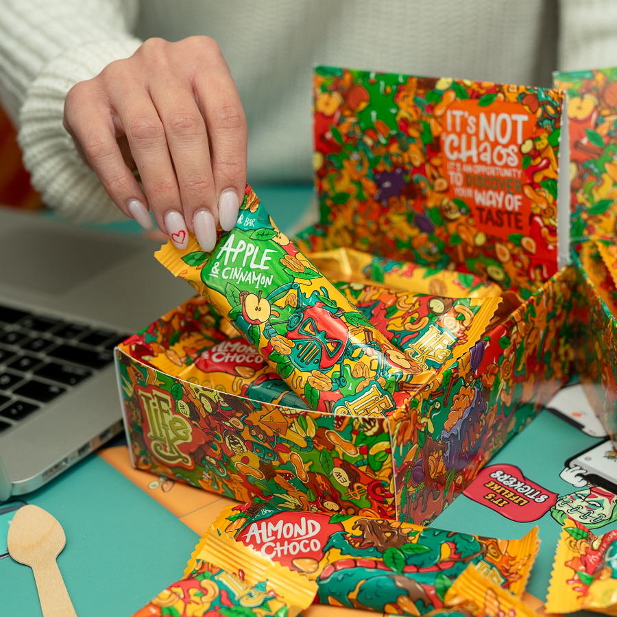 naprostý úlet , chutná jako štrůdl , konzistence je adekvátní , chuť jablek jemná až bych řekl taková máslová dokonale slaďoučká chuť a skořice nevtíravá neruší občasné prokřupnutí vlašskeho ořechu jen dokončuje celé kouzlo . tyčinka polechtá chuťové pohárky a pohladí na duší