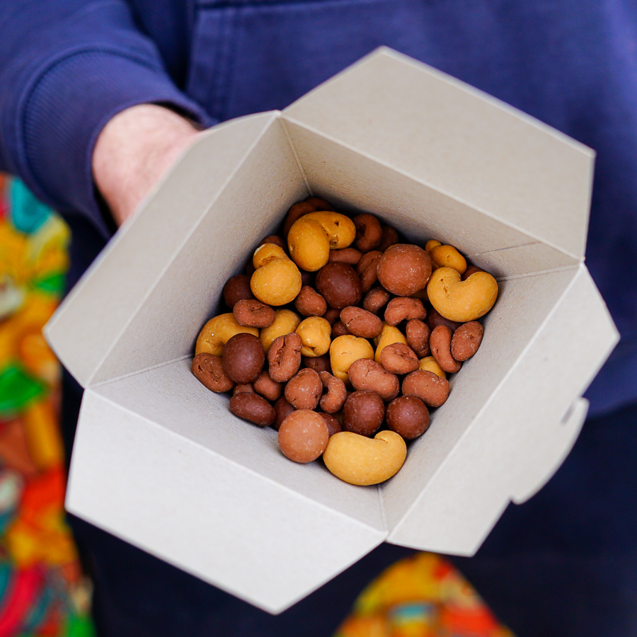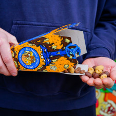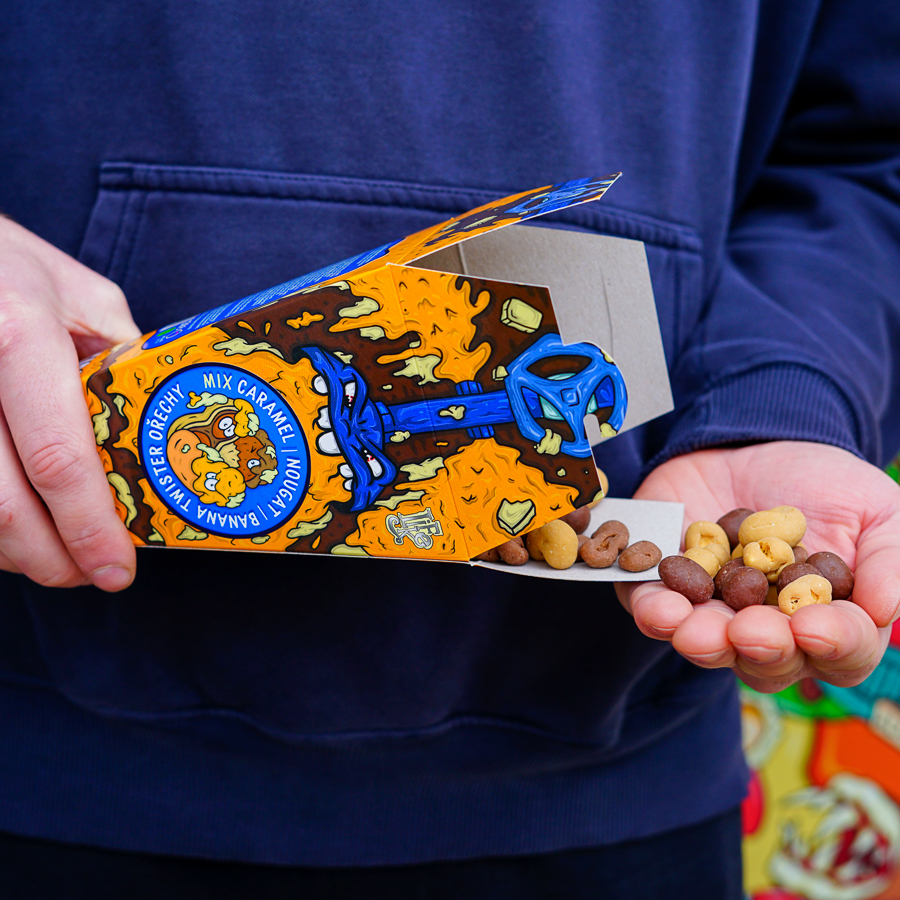 V balení najdeš rovnou tři příchutě 👉 Kešu ořechy obalené v čokoládě s Banana Caramel Choco Twistrem. Jak druhá příchuť se představí Arašídy v čokoládě která je doladěna Caramel Twistrem a do třetice kombinace obalených Lískových oříšků, čokoláda a Nougat Twister 🥳